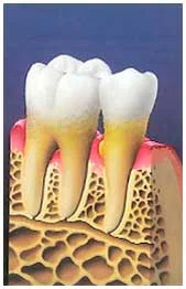 In advance stages, the gum recedes from the tooth and bone structure is lost, endangering the stability of the tooth